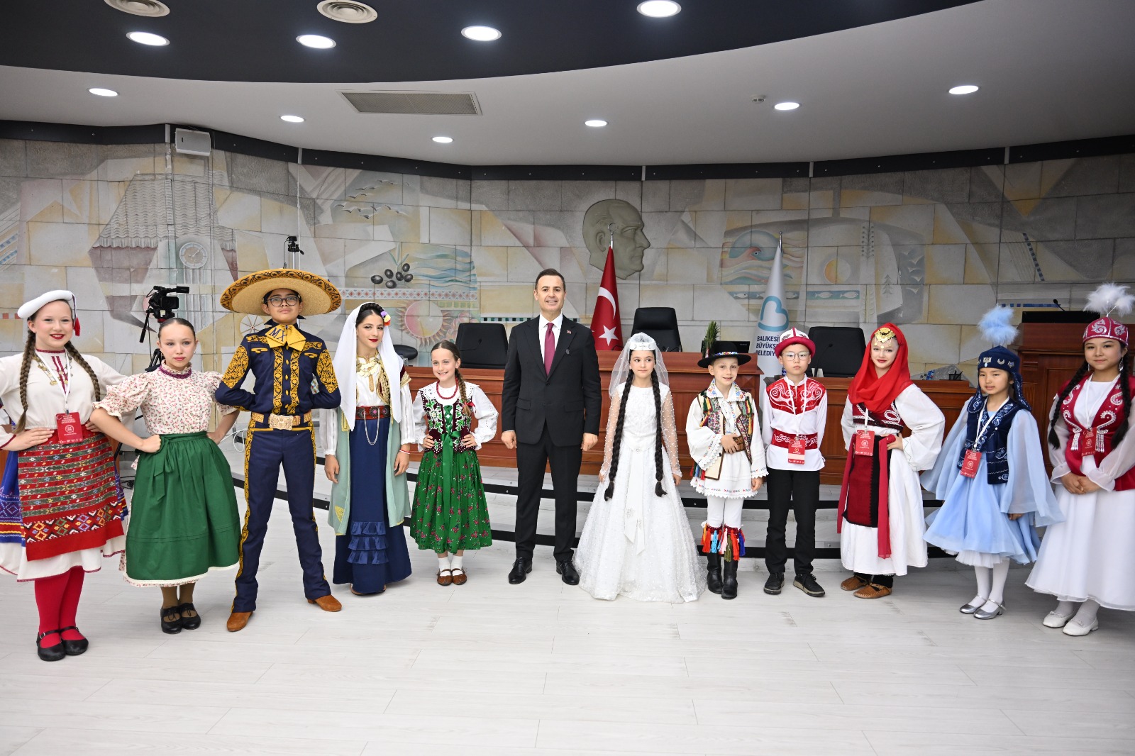 Balıkesir Büyükşehir Belediye Başkanı Ahmet Akın, 2. Balıkesir Uluslararası Çocuk Festivali kapsamında şehre gelen Macaristan, Gürcistan, Meksika, Kırgızistan, Kosova, Polonya, Bulgaristan, Romanya ve Karadağlı çocukları ağırladı. Başkan Akın, kendisini ziyaret eden çocuklarla Büyükşehir Belediyesi Meclis Salonu’nda bir araya geldi. Çocuklarla yakından ilgilenen Akın, Türkçe, İngilizce ve İspanyolca dillerinde sohbet gerçekleştirirken minik misafirlerinin 23 Nisan Ulusal Egemenlik ve Çocuk Bayramı’nı kutladı.