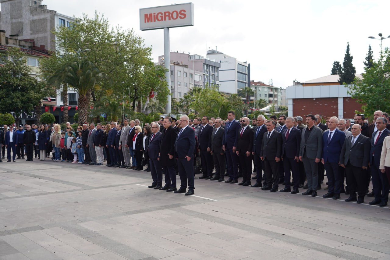 Kutlamaların ilk adresi Şehit Hamdibey Meydanı oldu. İlçe Milli Eğitim Müdürü Ramazan Esmen tarafından öğretmen ve öğrenciler eşliğinde Atatürk Anıtı’na çelenk sunuldu. Ardından saygı duruşunda bulunulup İstiklal Marşı okundu.