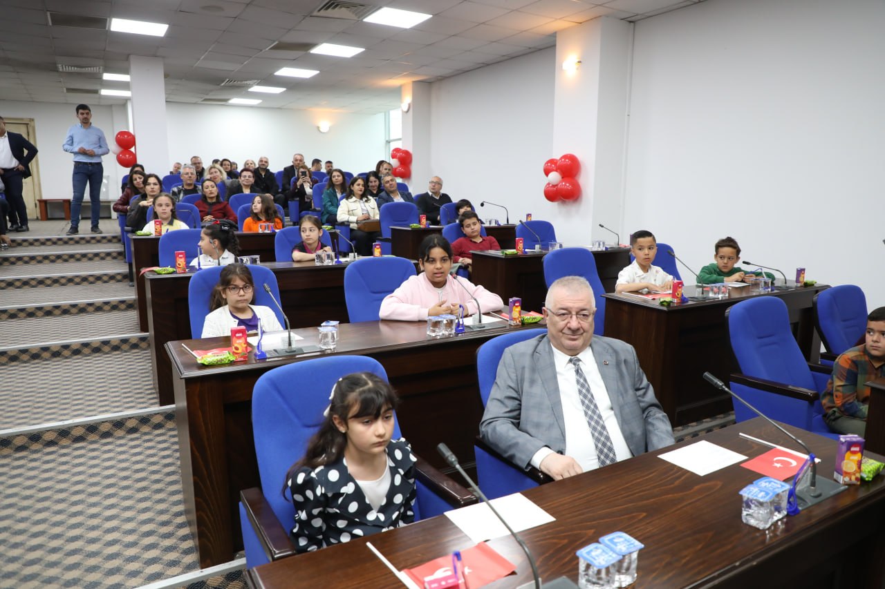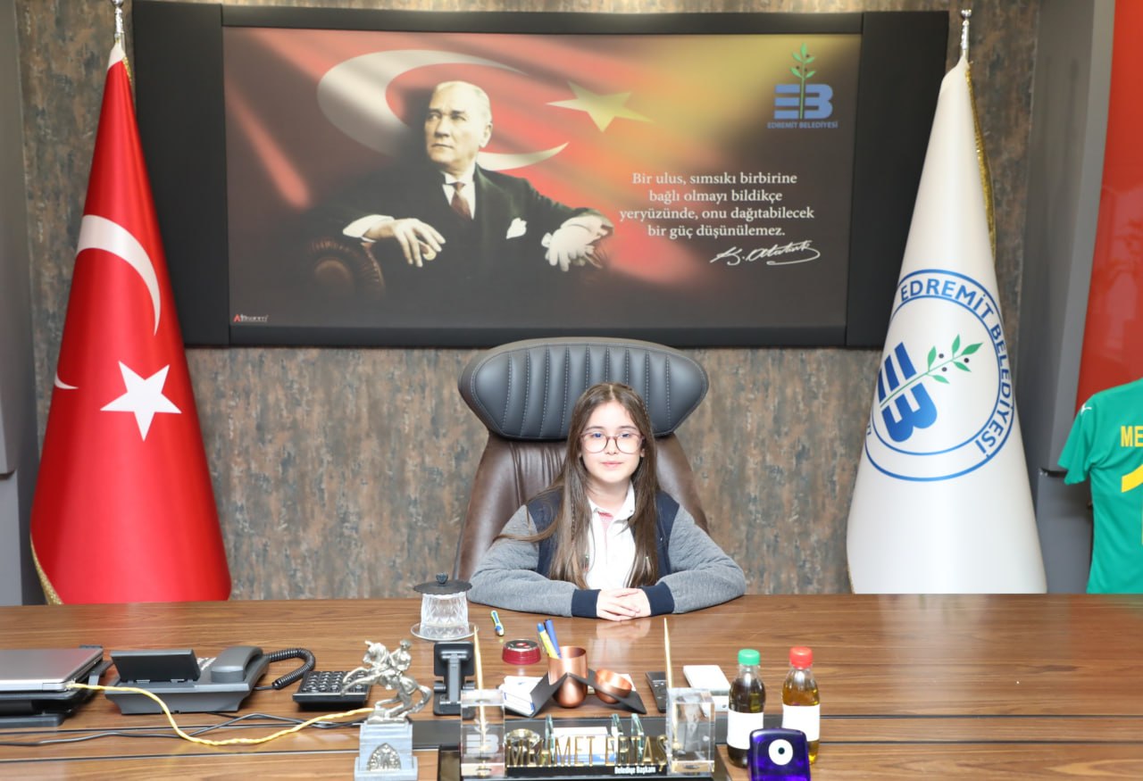 Edremit Belediyesi’nin her yıl geleneksel olarak düzenlediği Çocuk Meclisi toplantısı, ilçedeki farklı okullardan gelen 35 öğrencinin katılımıyla gerçekleştirildi. Toplantı öncesinde Başkan Mehmet Ertaş, belediye başkanlığı koltuğunu Girne Koleji 4. sınıf öğrencisi Masal Su Yakar’a bıraktı. Çocuk başkan Masal Su Yakar, ilk talimatını vererek 23 Nisan etkinliklerinin eksiksiz şekilde gerçekleştirilmesini istedi.