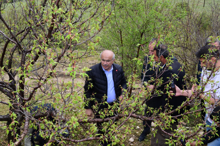 Yazıhan, Hekimhan, Kuluncak, Darende ve Akçadağ’da kayısı bahçeleri zarar görürken, üreticilerle bir araya gelen Er, sahada hasar tespiti yaptı.
